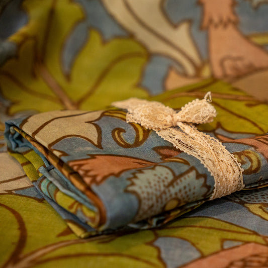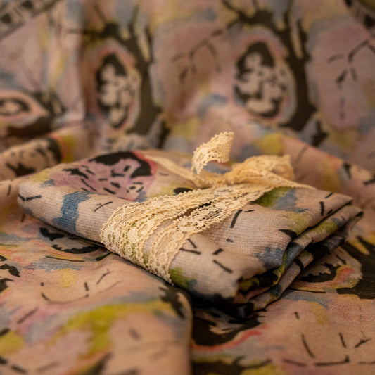 We created this Textile Artifacts family collaboration to release some of our most beautiful antique fabrics out of our archive and into the world as graceful, playful scarves.